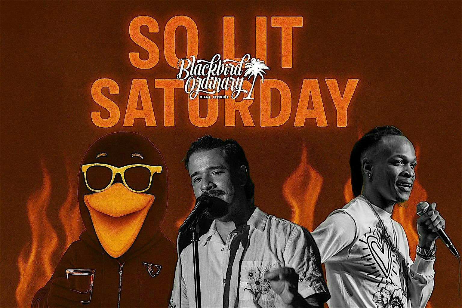 Blackbird Ordinary Southwest 1st Avenue 729, Miami, FL, United StatesSo Lit Saturday: nonstop comedy, guaranteed seating, shots, and a Miami afterparty that keeps the night alive. Free Shots at 9PM.