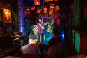 Our open mic night at Thank You Miami is especially curated for our night-owls! As the sun sets, this venue is where the community gathers not just to celebrate Miami's vibrant energy, but also to make new friends. Join us tonight, like every Monday, for an unforgettable start to your week, full of laughter and good company. We highly recommend making your seating reservations in advance and ordering the Buy-One-Get-One-Free Drinks wristband.