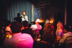 To stand out as a comedian, you need to learn to master one thing: tell your story, while engaging the crowd. Thinking about your favorite comedians you’ll realize that they may all vary in style, but they all have the same knack for hitting just the right note with their stories and jokes, making you feel like they're talking directly to you. It’s a real skill to be able to tell a story on stage and leave an imprint on the crowd. Great comedy isn't just about getting laughs – it's about building real connections with people. I'm all about helping folks tap into that magic, to really leave a mark with their humor. If that sounds like something you're into and you're keen to amp up your comedy game, drop me an email. Let's make it happen!